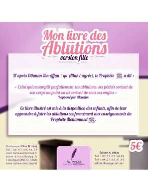 Ce livre illustré est mis à disposition des enfants afin de leur apprendre à faire les ablutions conformément aux enseignement du Prophète Mohammed (paix et salut sur lui)