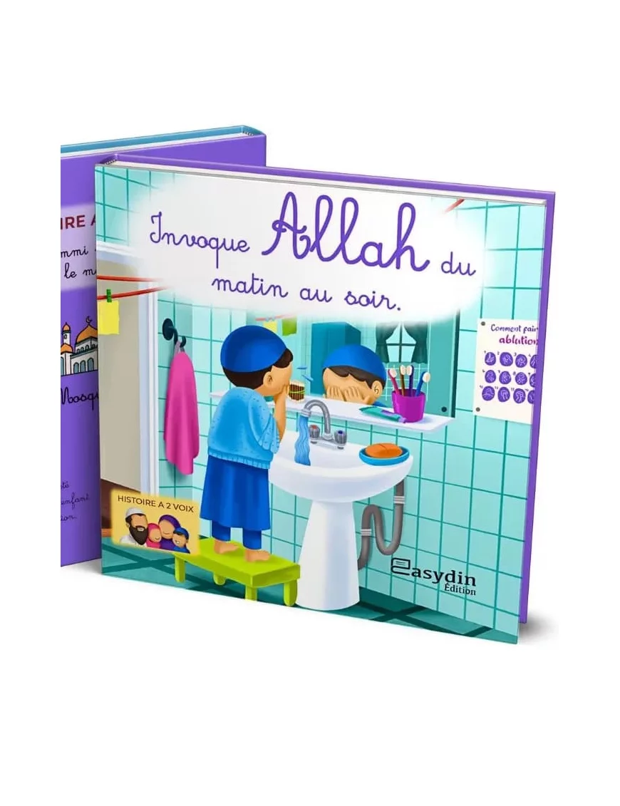 Invoque Allah du matin au soir est un livre islamique publié par Easydin, à l'attention des enfants. Servez-vous-en pour enseigner les invocations aux plus jeunes. Il offre en effet une approche ludique et interactive pour intégrer les douas dans la vie quotidienne des plus petits.