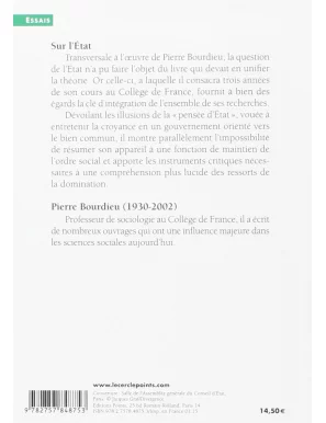 Transversale à l’œuvre de Pierre Bourdieu, la question de l’État n’a pu faire l’objet du livre qui devait en unifier la théorie. Or celle-ci, à laquelle il consacra trois années de son cours au Collège de France, fournit à bien des égards la clé d’intégration de l’ensemble de ses recherches.
