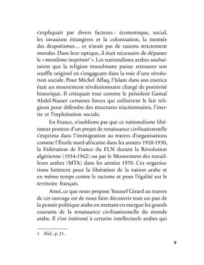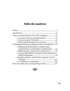 « [...] cet ouvrage n’a nullement prétention à produire une analyse exhaustive de la pensée politique arabe contemporaine avec tous ses courants et ramifications mais de fournir des clefs de lecture de la scène politique arabe. En fournissant ces clefs, nous espérons dépasser les “bruits” trop souvent réducteurs des commentaires médiatiques de l’actualité pour mieux comprendre les dynamiques traversant la société arabe. Nous espérons également que ces clefs de lecture seront utiles à celles et ceux qui s’intéressent à la scène politique arabe afin d’alimenter leur propre réflexion. Car, à défaut de donner des réponses définitives, ce livre veut d’abord introduire des débats et ouvrir des questionnements en prenant souvent le contre-pied du discours dominant. »