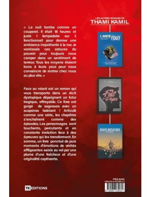 Avec son roman intitulé Face au néant, paru aux TK éditions, Thami Kamil nous plonge dans un futur sombre. Son récit s'ouvre dans des rues délibérément mal éclairées, où le pouvoir utilise l'obscurité comme une arme parmi d'autres pour maintenir la population dans un état de crainte permanent.