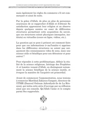 Par la grâce de Dieu, de plus en plus de structures (physiques ou digitales) permettant d'apprendre sa religion voient le jour. Ainsi, l'étudiant peut y retrouver des enseignements traditionnels et/ou académiques et ceci, dans toutes les matières, et visant tous les niveaux. La question que doit se poser à présent cet étudiant soucieux d'apprendre sa religion : comment faire pour que ce que j'apprends ne soit pas simplement des informations vides de sens, mais une science bénéfique pour moi et les autres? Cette épître tente de donner à cet étudiant quelques pistes de réflexions issues de nos textes fondateurs.