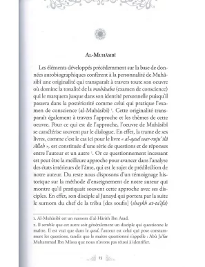 Al-Muhâssibî est connu pour être un fin connaisseur de l'âme humaine (an-nafs), ses analyses pertinentes sous-tendues par sa grande expérience dans l'éducation de ces disciples seront d'un grand secours pour tout musulman aspirant à se rapprocher de Dieu.
