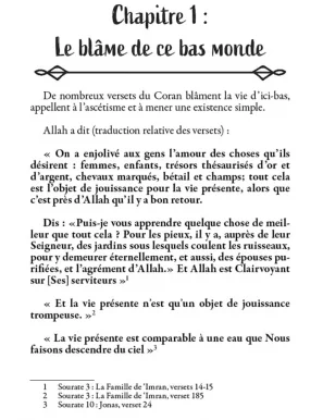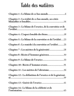 Par ailleurs, l'auteur établit une distinction claire entre ce qui est louable et ce qui est blâmable dans l'acquisition des biens terrestres. Il approuve ceux qui prennent juste ce dont ils ont besoin, conformément aux prescriptions islamiques. En revanche, il met en garde contre l'excès, qui peut détourner le croyant de la recherche de l'au-delà.