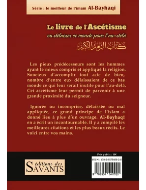 Le livre de l'ascétisme d'Al Bayhaqi, publié par les éditions Des Savants, est une œuvre qui vous présente un principe fondamental de l'islam souvent mal compris ou négligé : l'ascétisme.