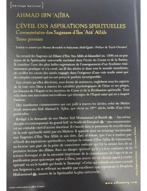 Rédigé à la demande de son Maître Sidî Muhammad al-Buzidî lui-même disciple et contemporain du grand Sidî ‘al-‘Arabî ad-Darqâwî son commentaire est un véritable chef-d’œuvre doctrinal. Il s’inscrit dans le processus de revivification de la voie spirituelle initié par ses Maîtres. Il apporte ainsi un éclairage inestimable aux Sagesses d’Ibn ‘Ata Allâh et son titre, Îqâẓ al-himam, que l’on a traduit par « l’éveil des aspirations spirituelles », marque la volonté d’Ibn ‘Ajîba de transmettre au lecteur une part de la prise de conscience radicale qui fut la sienne lors de sa première lecture des Ḥikam. Face au danger spirituel qu’il y a à se contenter de la science livresque et de la nécessité impérieuse de la connaissance de l’ego et de sa purification pour quiconque aspire à Dieu, son œuvre est un vibrant appel à rendre opératif en soi le hadîth qui fonde le Tasawwuf: « Celui qui connaît son âme connaît son Seigneur », en se référant au modèle par excellence que représente le Prophète Muhammad صلى الله عليه وسلم, source de la Spiritualité la plus universelle.