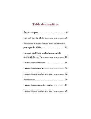 Les invocations et évocations du matin et du soir ont été séparées afin de donner aux lecteurs un confort de lecture.