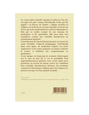 La courte épître intitulée Ayyuha al-walad est l’un des ouvrages les plus connus d’al-Ghazâli. Celui qui fut appelé « la Preuve de l’islam » (Hujjat al-islâm) la rédigea vers la fin de sa vie pour répondre à l’un de ses élèves qui avait étudié plusieurs sciences islamiques et finit par se rendre compte de son manque de profondeur et de spiritualité. Elle peut donc être considérée comme une véritable introduction au cheminement spirituel.
