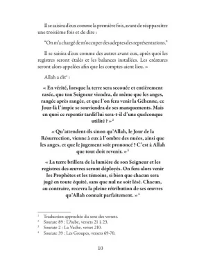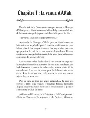 Dans le récit de la Corne, on trouve que, lorsque le Messager d’Allah (paix et bénédictions sur lui) se dirigera vers Allah afin de lui demander que le jugement ait lieu, le Seigneur lui dira : «Je viens à vous afin de juger entre vous.» Après cela, le Messager d’Allah (paix et bénédictions sur lui) reviendra auprès des gens. Les cieux se déchireront pour laisser place à des nuages éclatants. Les anges, ainsi que ceux qui peuplent le ciel de ce bas monde, descendront. Ils sont aussi nombreux que les habitants de la terre, jinns et humains confondus. Ils les encercleront.