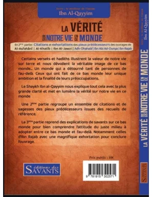 Nous évoluons dans un monde où la quête des plaisirs semble ne jamais s'arrêter. Mais il est bon d'avoir des piqûres de rappel qui nous rappellent l'essentiel. Le livre La vérité sur notre vie en ce monde d'Ibn Al Qayyim s'inscrit dans ce registre puisqu'il nous aide à comprendre la vraie place de ce bas monde dans notre existence. Beaucoup de gens aujourd'hui font de cette vie leur seul but et oublient ce qui les attend après. Ce livre nous ouvre les yeux sur cette réalité importante.