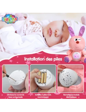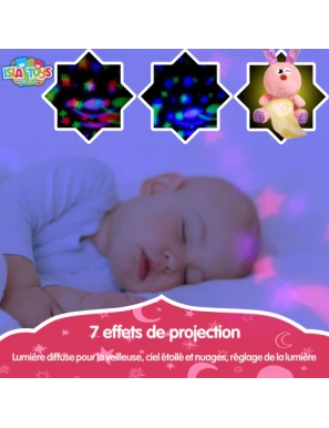 Elle dégage également des projections de ciel étoilé pour favoriser l'endormissement de votre bébé ce qui en fait le compagnon idéal pour les nuits agitées ou les moments de stress.