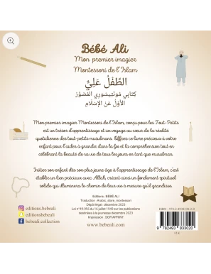 Mon premier imagier Montessori de l'Islam, conçu pour les Tout-Petits est un trésor d'apprentissage et un voyage au cœur de la réalité quotidienne des tout-petits musulmans. Offrez ce livre précieux à votre enfant pour l’aider à grandir dans la foi et la compréhension tout en célébrant la beauté de sa vie de tous les jours en tant que musulman. Initier son enfant dès son plus jeune âge à l'apprentissage de l'Islam, c'est établir un lien précieux avec Allah, créant ainsi un fondement spirituel solide qui illuminera le chemin de leur vie à mesure qu'il grandisse.