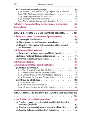 Ces quatre aspects (relation islam-argent, spiritualité, éthique, finalités) constituent l'autre versant de toute étude sur les normes (fiqh) de la zakât et des aumônes sadaqât que nous déployons dans trois autres livres : (2) Zakat, guide Pratique destiné à tout public musulman désirant connaître ce troisième pilier, (3) Le livre de la zakât destiné à un public plus intéressé par les détails, les développements nécessaires sur certains éléments et (4) Le livre des aumônes, mérites et fiqh.