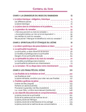 Ce livre est une contribution à assoir ces trois dimensions du jeûne en islam : spiritualité, éthique et finalités (maqâsid) qui doivent accompagner l'acte d'abstinence.